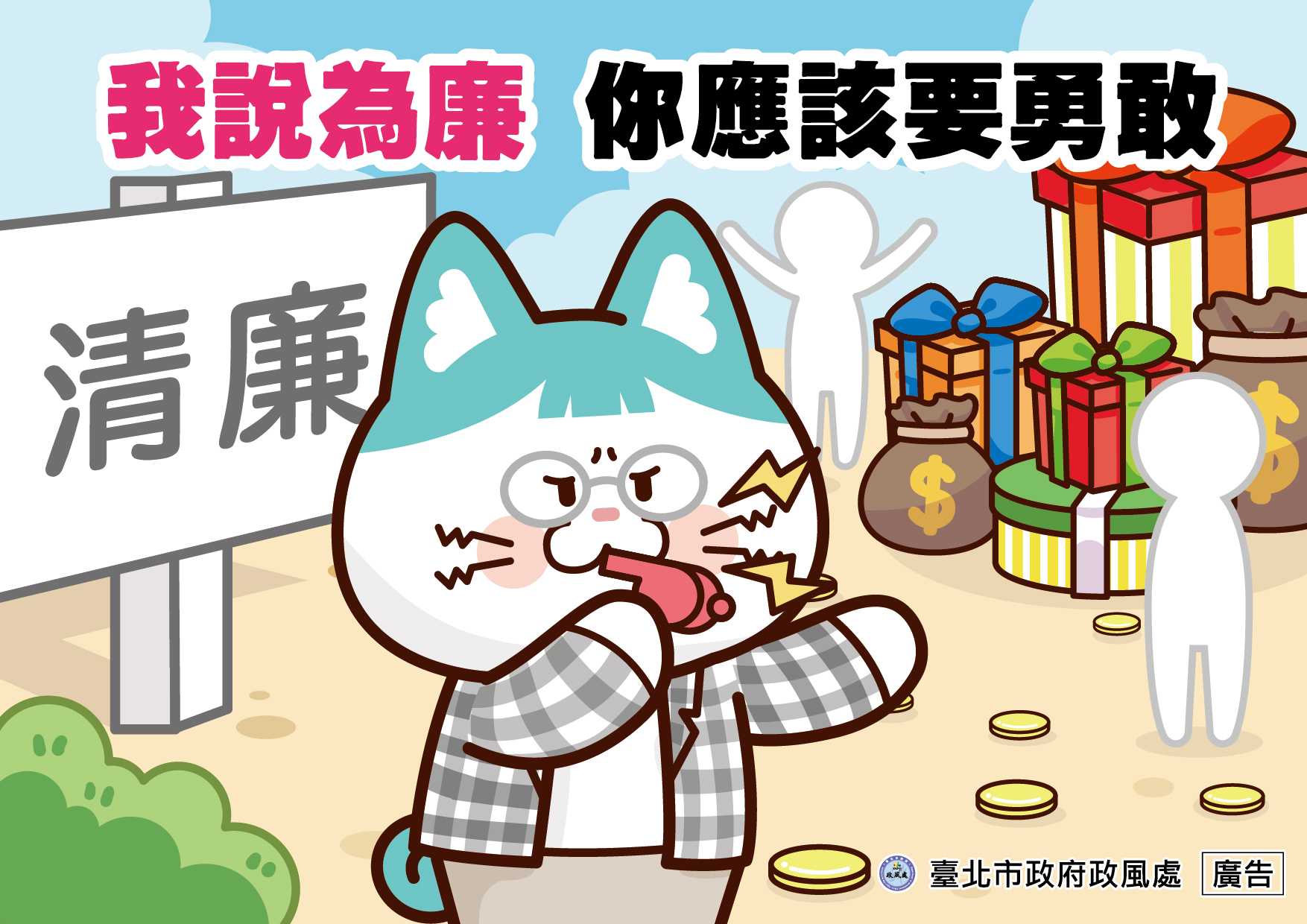 臺中市政府政風處製作「陽光『鄉』隨,幸福『廉』 結」動畫影片